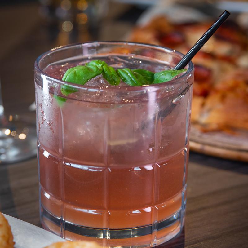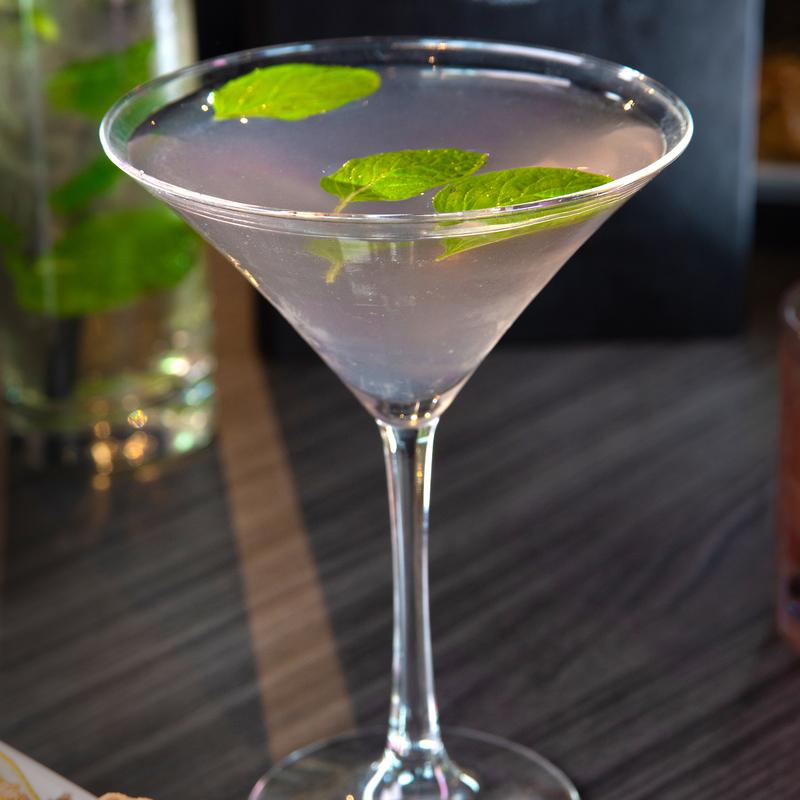 Vodka, triple sec, lemon juice, splash of cran, lavender syrup, lemon wedge & basil leaf